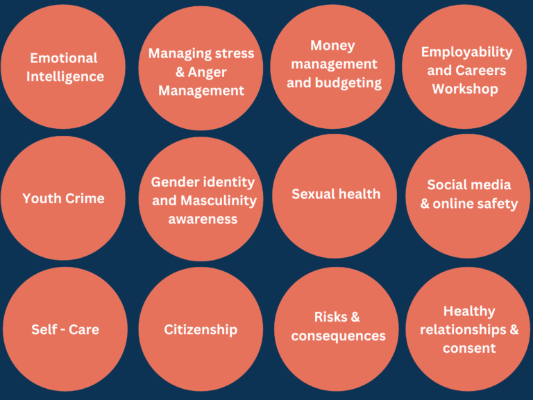 My group work sessions consist of a 6-8 week programme which focuses on a range of topics.